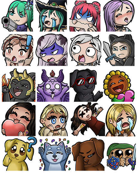 Here are some examples of emotes I have created in the past. My capabilities are not limited to these examples, we can create any emotes with any expressions you'd like!